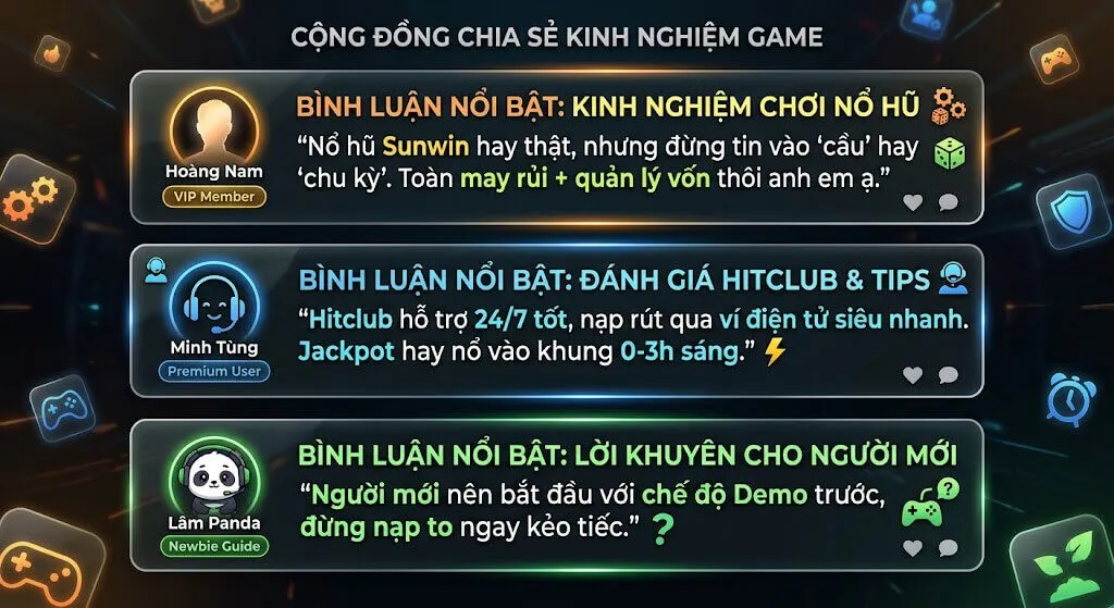 - “Hitclub hỗ trợ 24/7 tốt, nạp rút qua ví điện tử siêu nhanh. Jackpot hay nổ vào khung 0-3h sáng.”